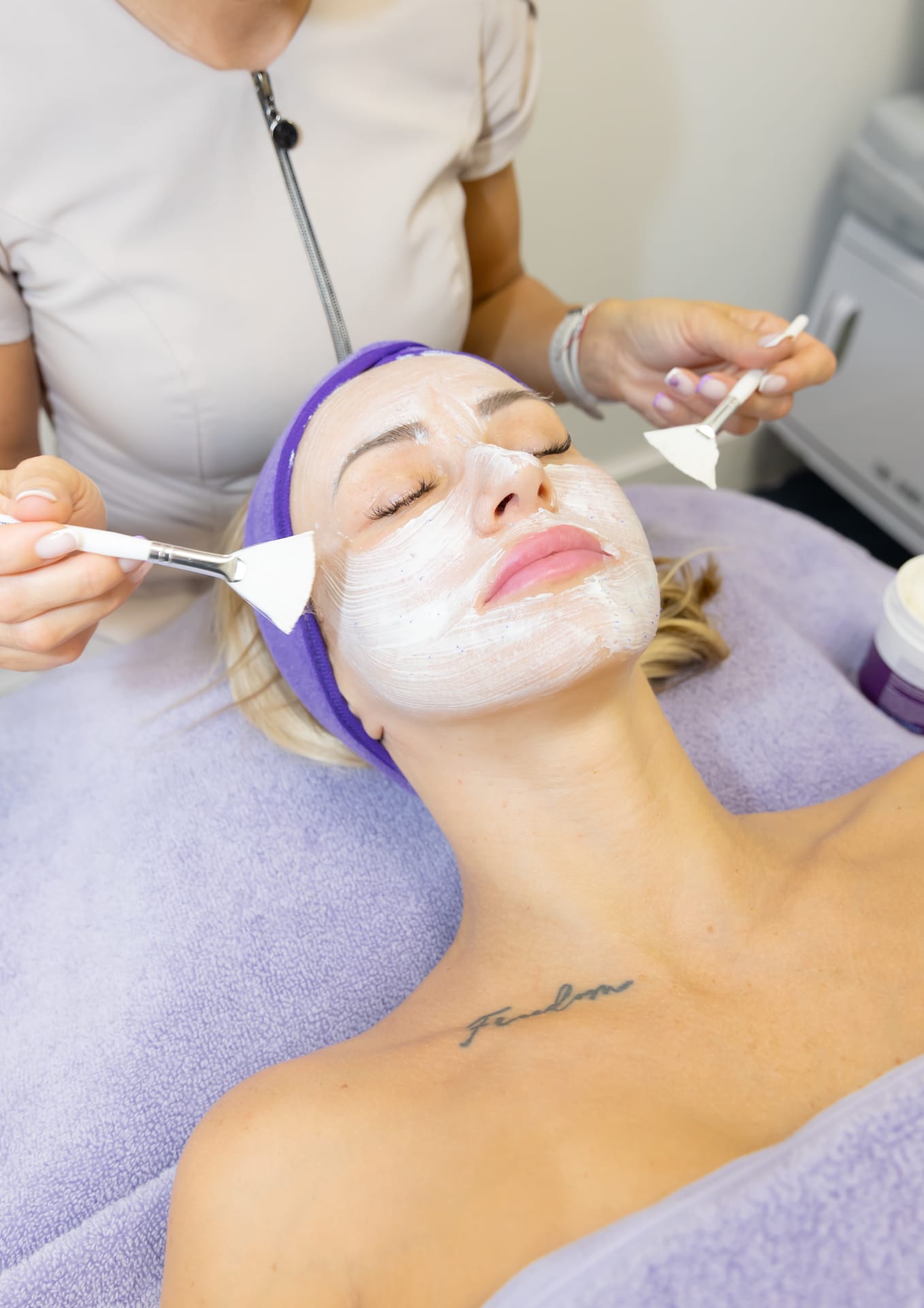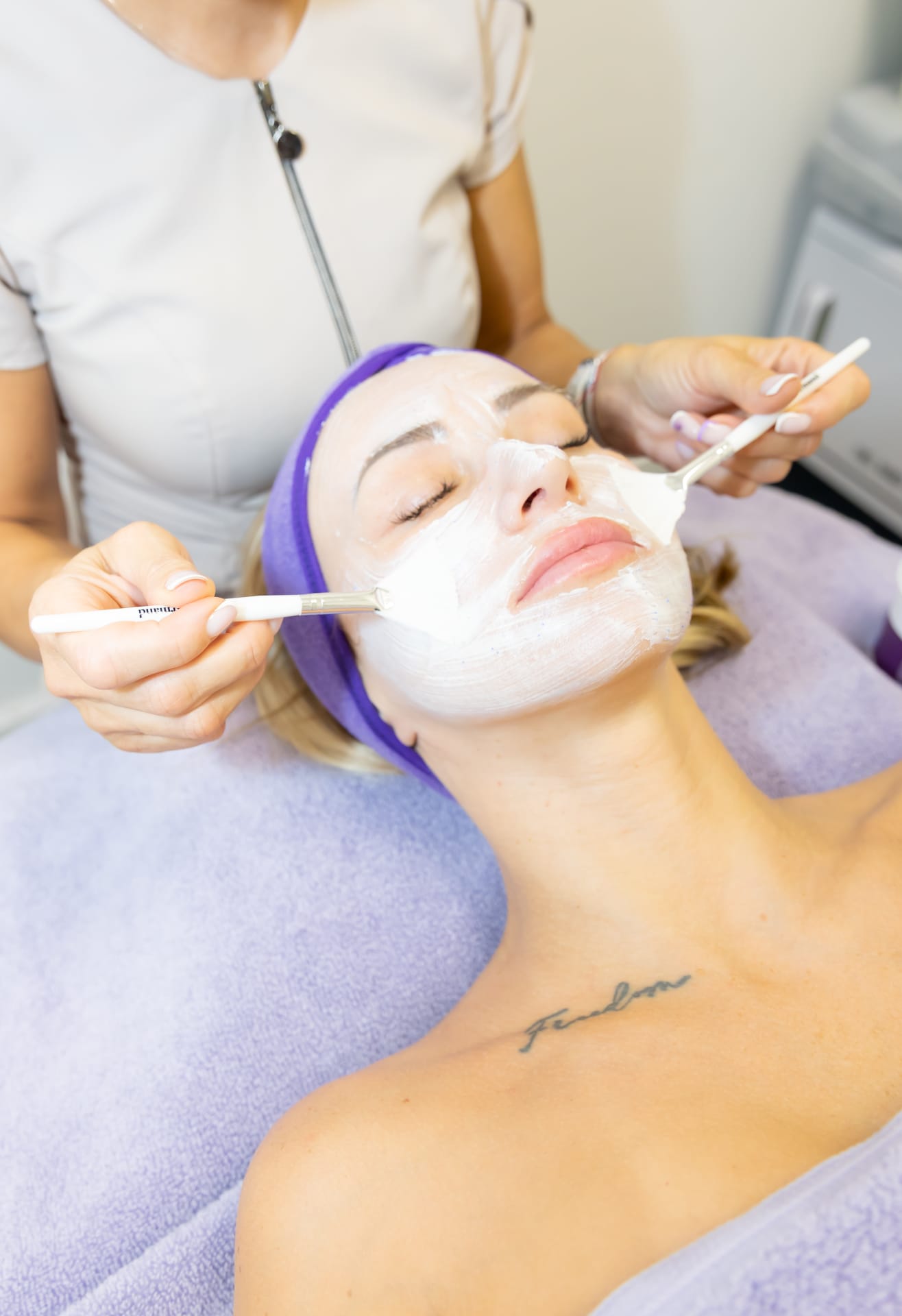 Using Juliette Armand skincare and cutting-edge devices for optimal results.